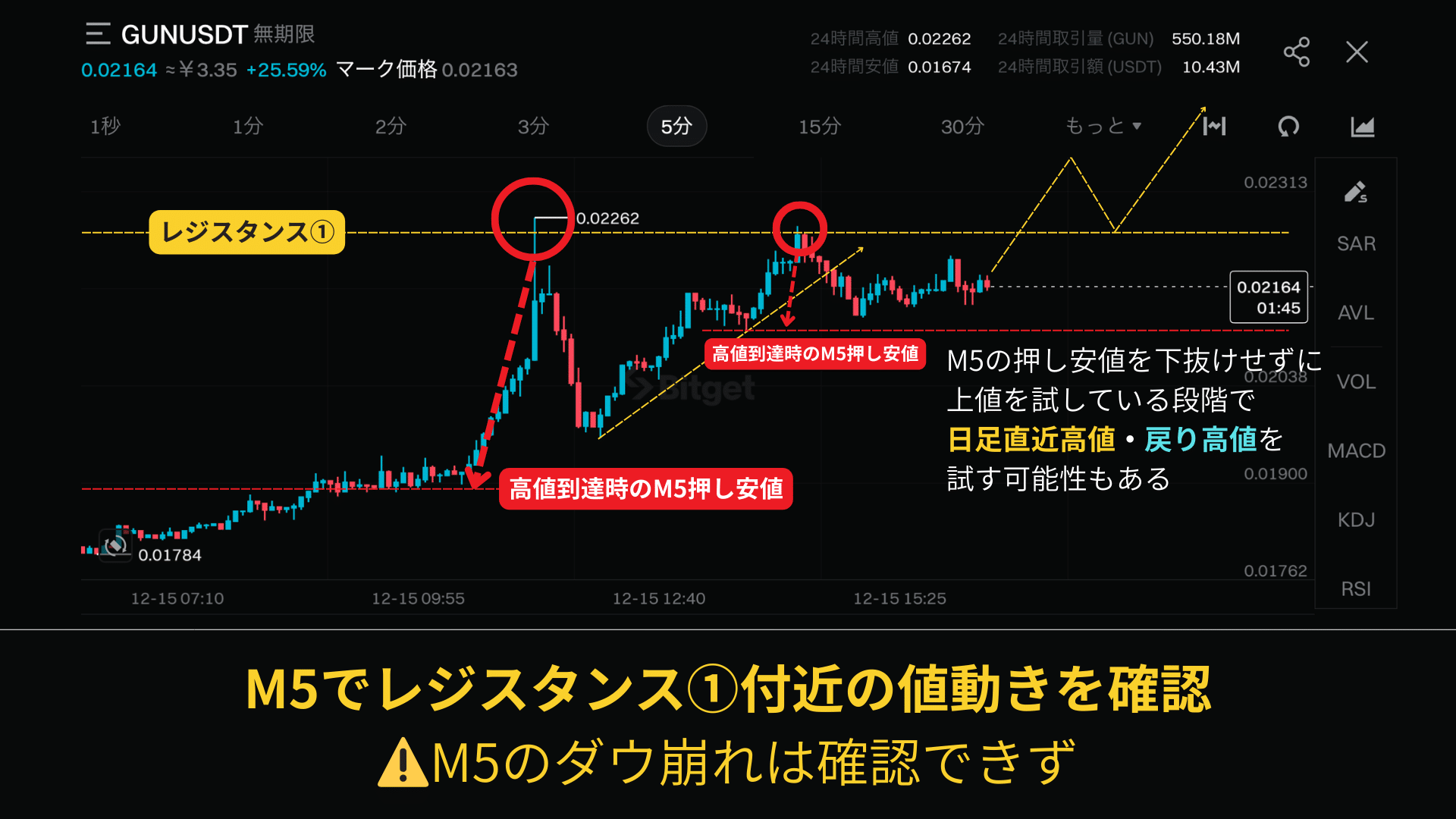 ②レジスタンスライン付近のM5の値動き