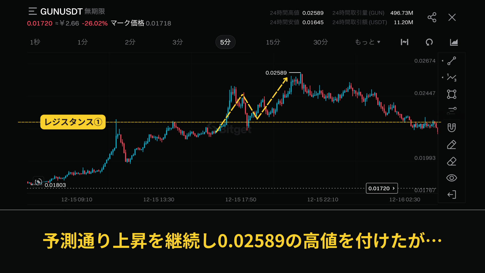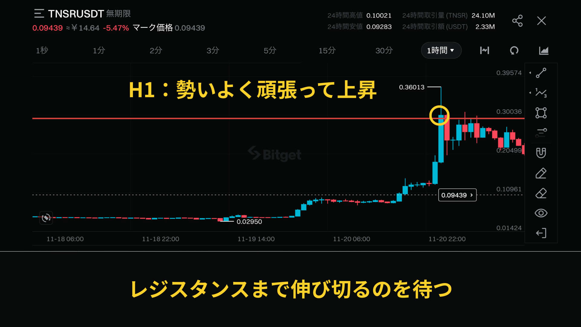 このレジスタンス到達時にどうするかは、次で解説します。