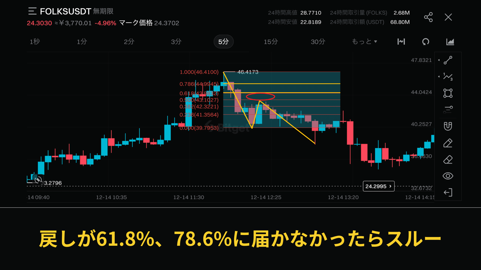 ③5分足反発後の61.8%、78.6%戻しを待つ
