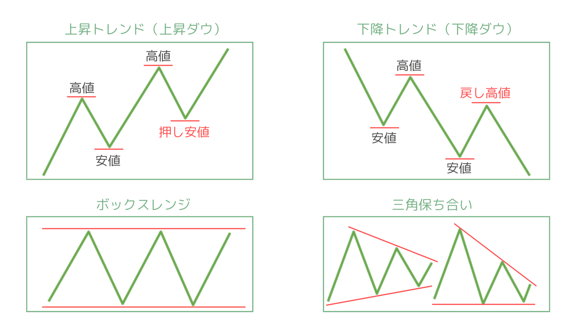ダウ理論ではトレンドを以下のように定義します:
