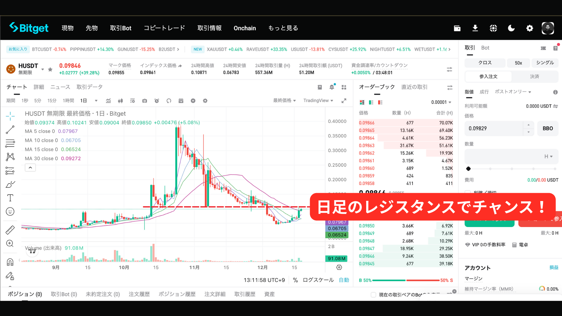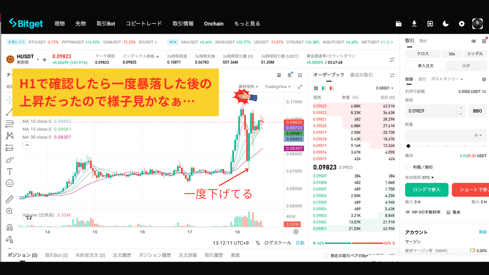 あとはトレードする上で、フィボナッチの引き方とか、損切りの設定方法とか、利確の設定方法などの操作手順を理解できればアルトコイントレードで利益を狙うことができるでしょう。