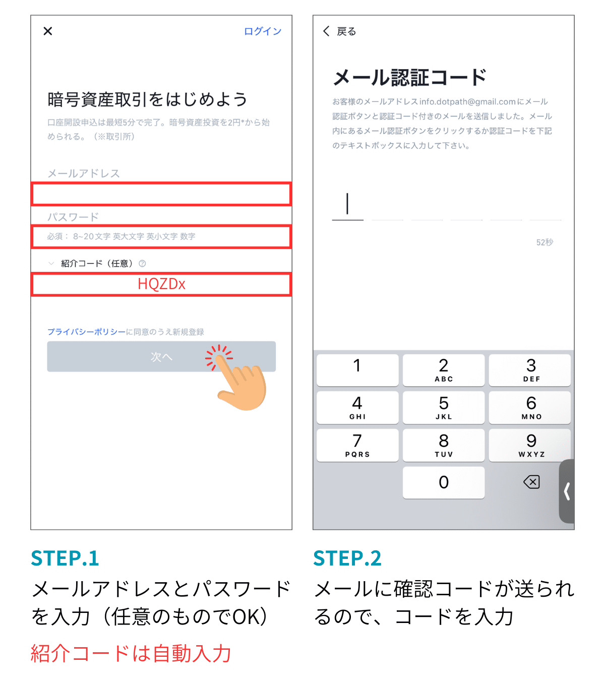 もし紹介コードが入っていない場合は「HQZDx」を入力してください。