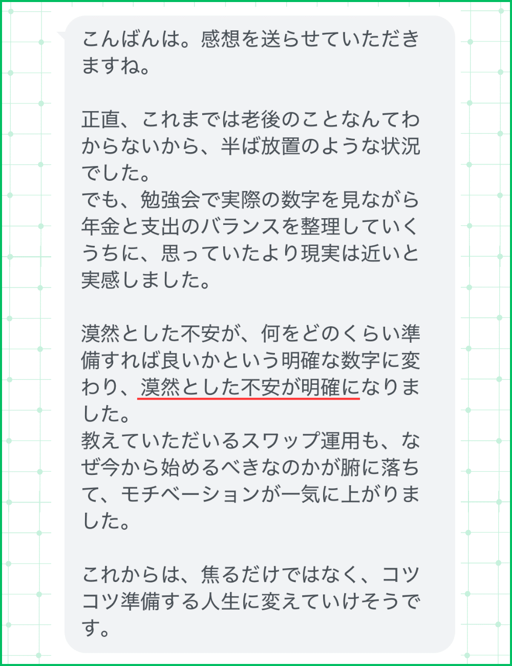 確かに、直接お金が稼げる内容ではないですが、ここで得られる知識は老後のあなたを助けるものになると確信しています。