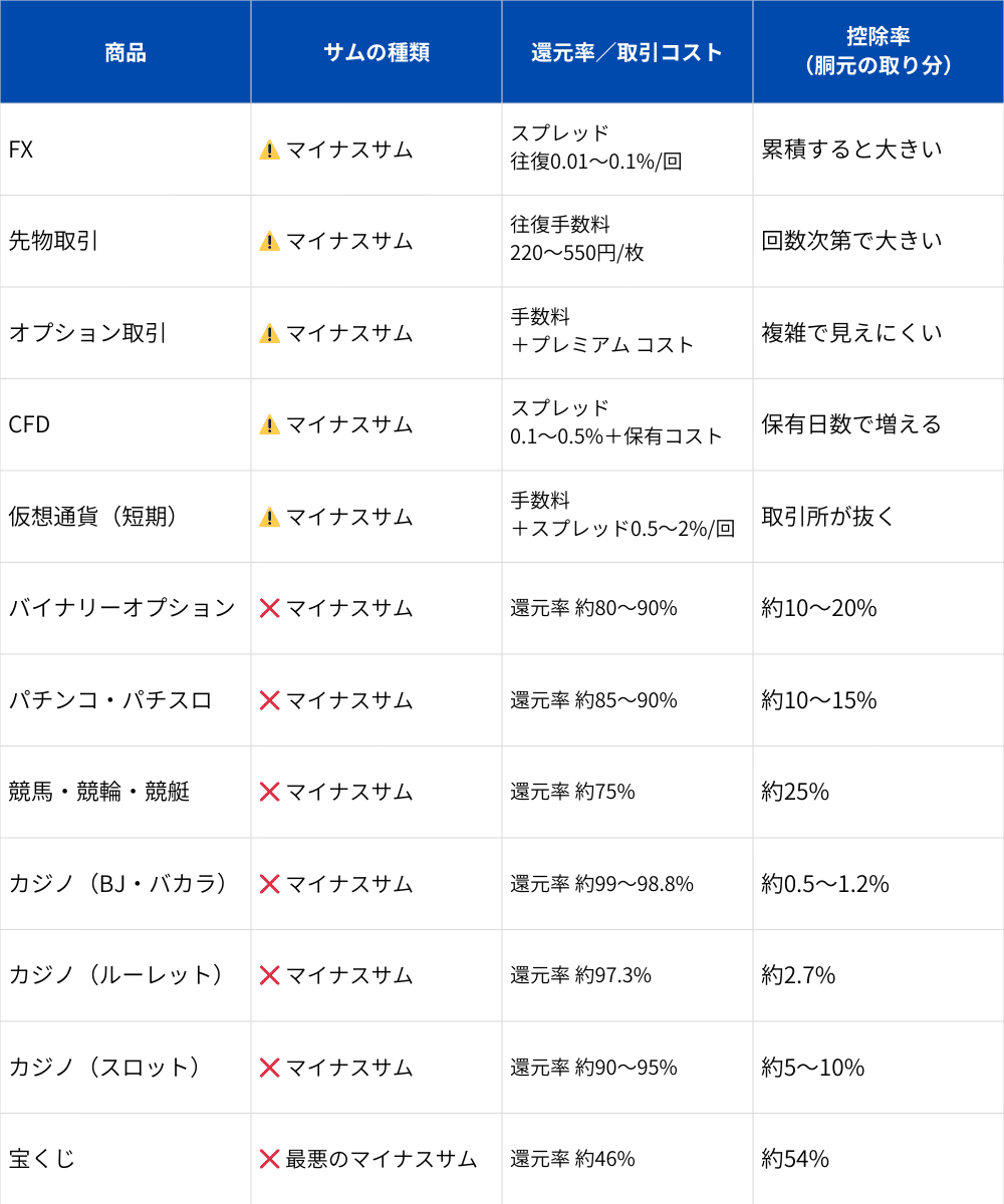 この一覧を見ると、「投資なんてギャンブルだ!」と言いたくなる気持ちがわかります。
