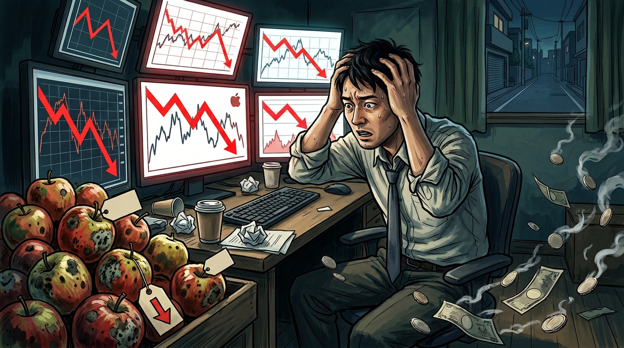 タケシさんの手持ちの50万円分のりんごは、今や40万円の価値しかありません。